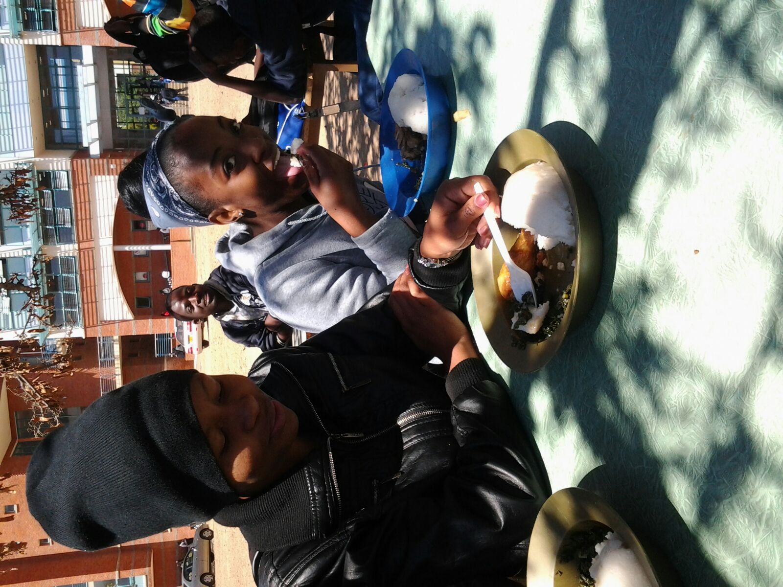 Thats me and one of the classmate-friend having lunch on campus …yea we had sadza on our first day ….