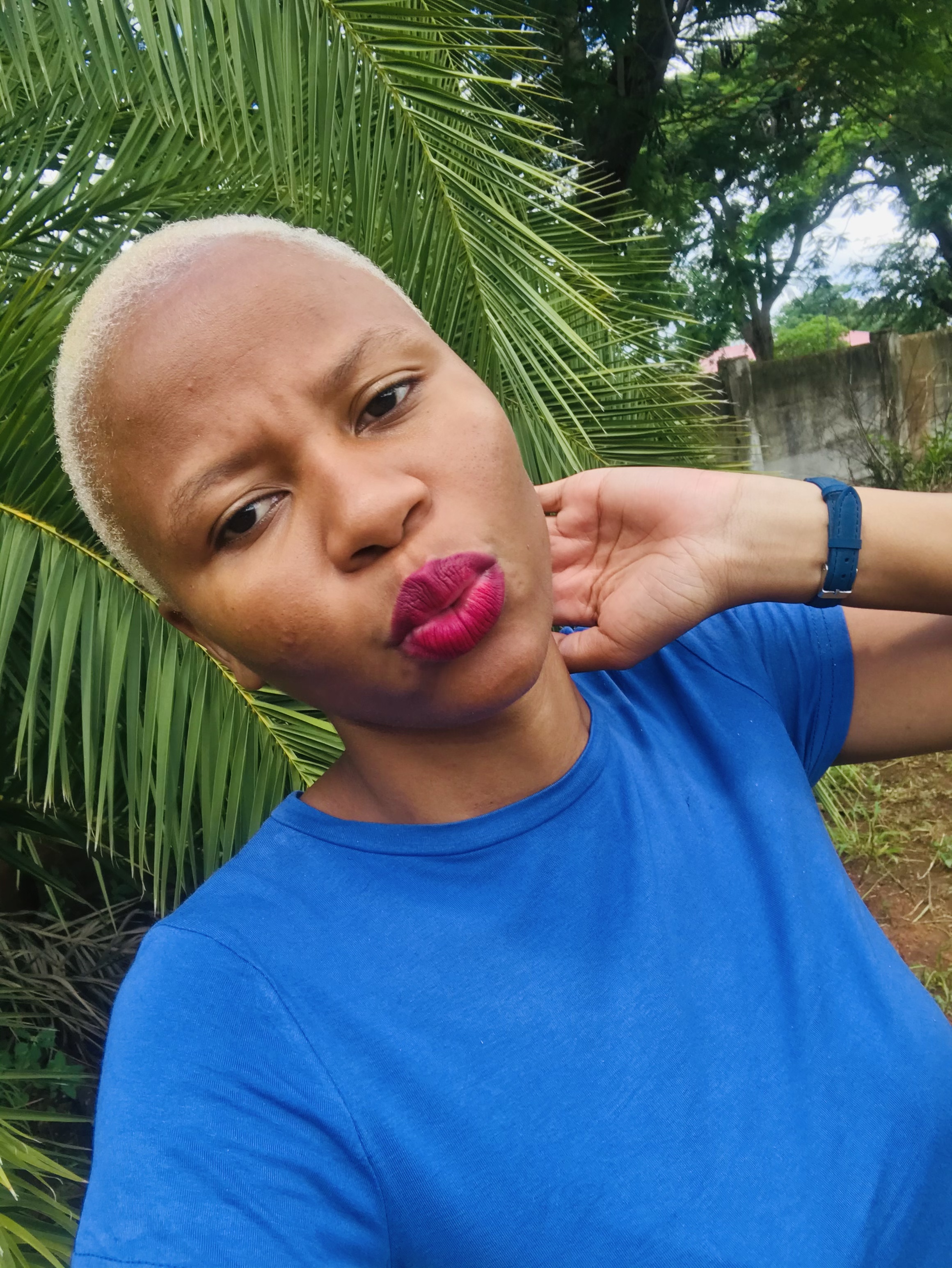 I wanted to dye my hair grey, but 😭 it was an epic fail. Guess what? My barber whom l love very much got me purple hair instead and l ended up going back to blonde which isn’t bad.